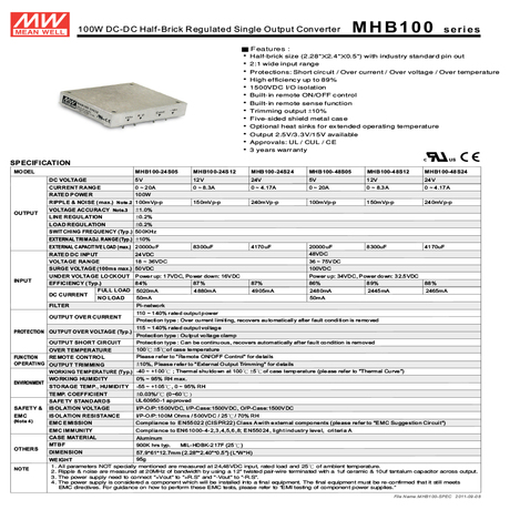 Mean Well MHB100-48S24 DC-DC převodník 36-75/24V