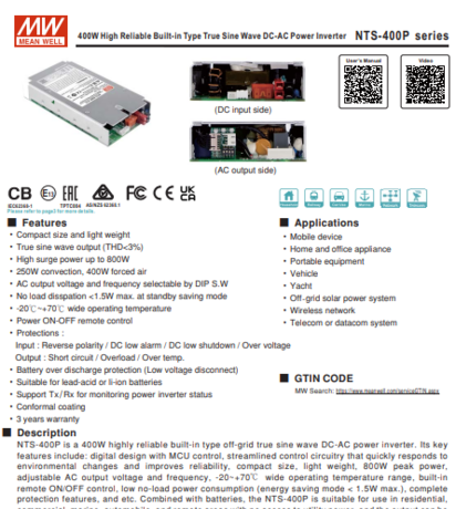 Ochrana: přepěťová ochrana, proti přehřátí, proti přetížení a reverzní polarita